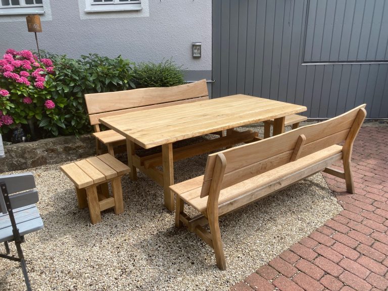 Machen Sie Ihren Außenbereich zum Lieblingsplatz mit unseren maßgefertigten Outdoor-Sitzgruppen aus echter Tischlerhand. Ob gemütlich, modern oder klassisch – jede Sitzgruppe wird mit Sorgfalt und aus langlebigen, wetterfesten Materialien gefertigt. Als regionaler Tischlerbetrieb stehen wir für Beständigkeit, individuelles Design und echtes Handwerk.